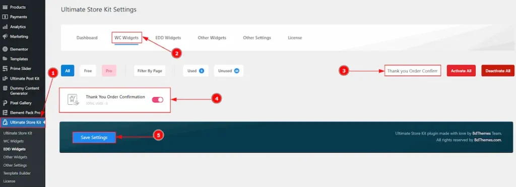 To use the Thankyou Order Confirmation widget by Ultimate Store Kit, first, you have to enable the widget.