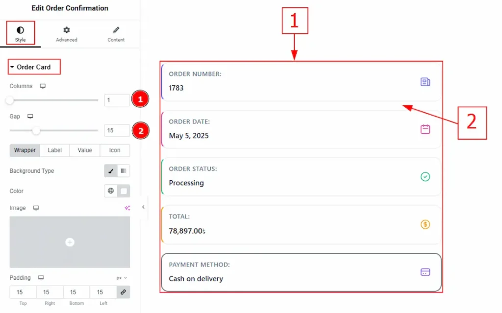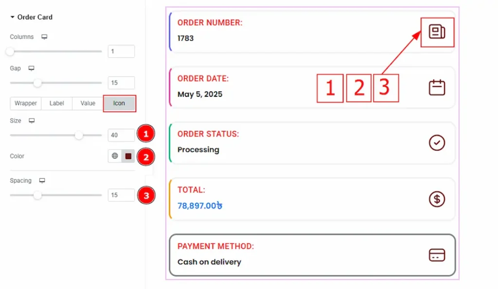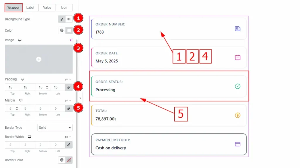 In this section, we have four tabs. These are – Wrapper, Label, Value and Icon. Let’s explore those one by one.