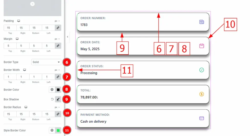 6. Border Type: This option allows you to add borders to your items. You can select various border types from this option. Such as Solid, Double, Dotted, Dashed, Groove.