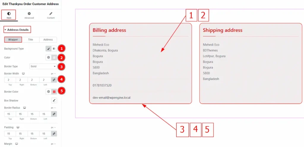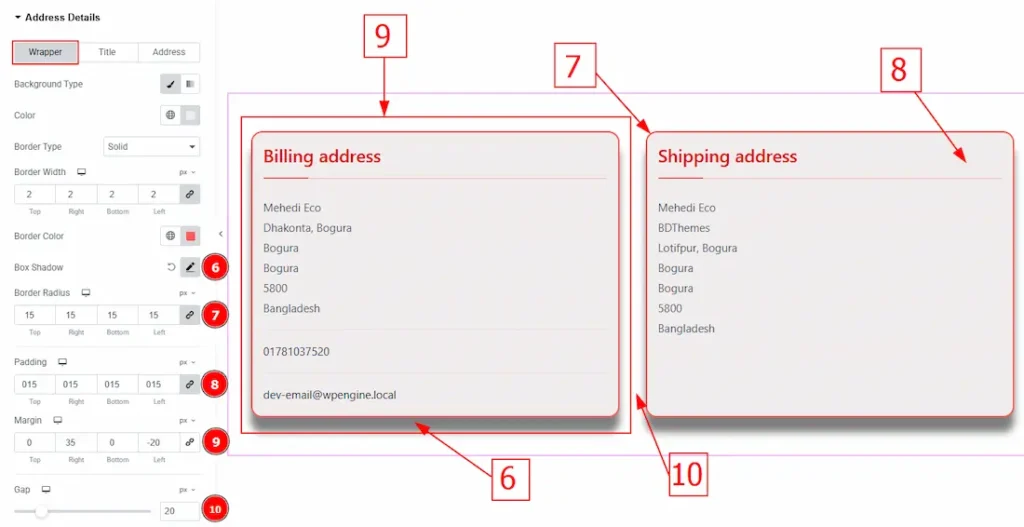 10. Gap: This option allows you to adjust the space between the billing address and the shipping address container.