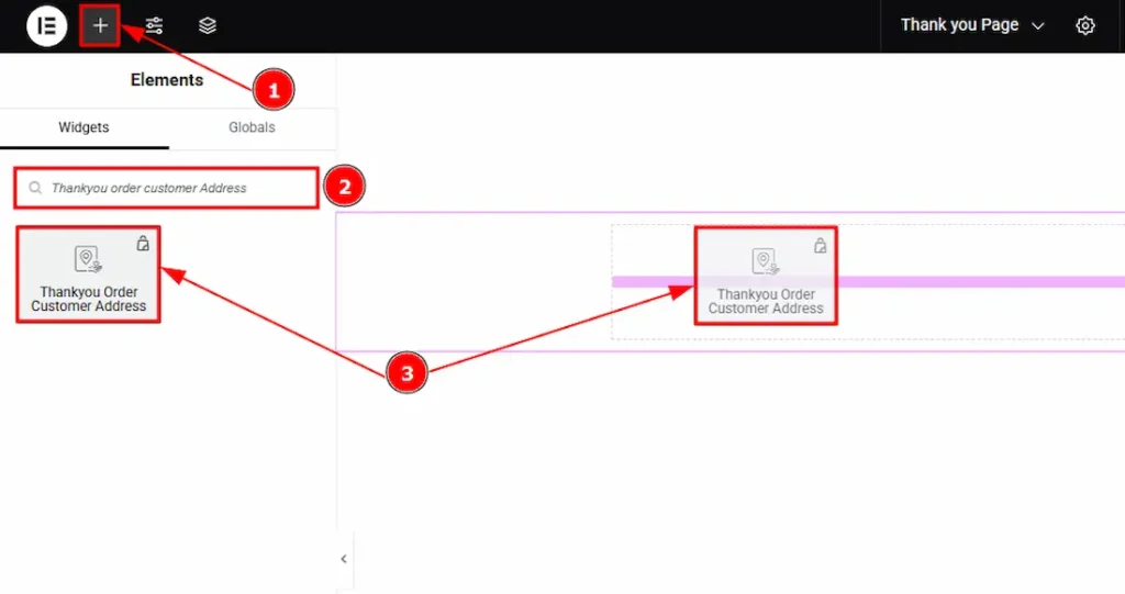 - Search the Thankyou Order Customer Address widget.