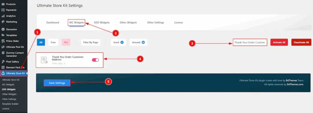 To use the Thankyou Order Customer Address widget by Ultimate Store Kit, first, you have to enable the widget.