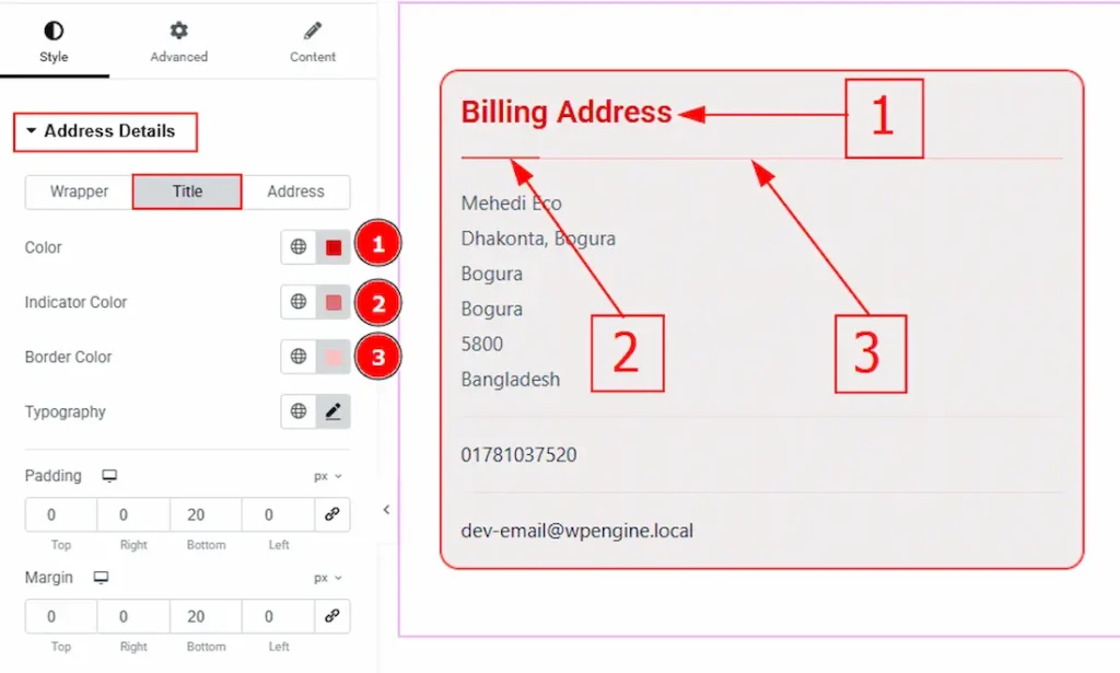 In this section, we have three tabs. These are – Wrapper, Title & Address. Let’s start with the Wrapper tab –