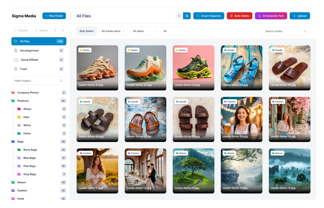 Organize your WordPress media library with powerful folder controls. Manage files visually and keep everything structured.