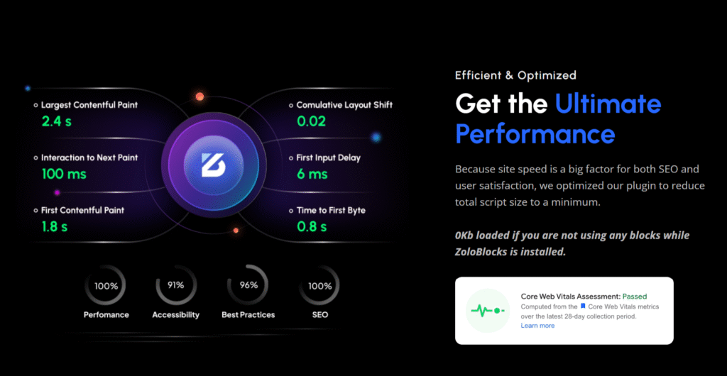This makes ZoloBlocks ideal for SEO, faster hosting environments, and users who prioritize performance.